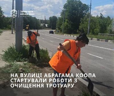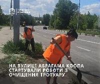 Стартували роботи з очищення тротуару. КП "Елуаш" видаляє зарості самосійної порослі, траву та наносний ґрунт.